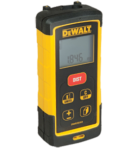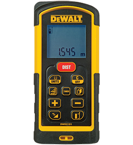 DEWALTin laseretäisyysmittarit ovat kompakteja, käteviä, tarkkoja ja helppoja käyttää. Pystyt lyhentämään pinta-alojen, huonetilavuuksien, materiaalimäärien arviointiin ja ikkuna- ja ovikarmien mittauksiin tarvitsemaasi aikaa ja pian etäisyysmittarista on tullut välttämätön työkalu tarvikelaukussasi.
