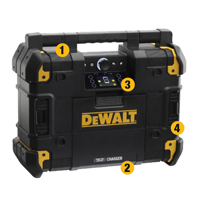 Uusi DWST1 81078/9/80 TSTAK radio antaa isot soundit kompaktissa koossa. TSTAK-radio antaa selkeän, dynaamisen ja vahvan äänen 6 kaiuttimella ja yhdistetyllä 45W ulostulolla. Ensimmäinen työmaaradio, jossa on edistynyt App, mikä antaa sinulle 100 % hallinnan. Suunniteltu vaativiin työmaaolosuhteisiin. TSTAK Radio on Guaranteed Tough, mikä tarkoittaa vankkaa rakennetta, iskunkestäviä kumipäällysteisiä kulmatukia ja IP54-luokitusta.